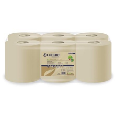 Papierové utierky, kotúčové, 2-vrstvové, LUCART "EcoNatural 500 CF", havana hnedé