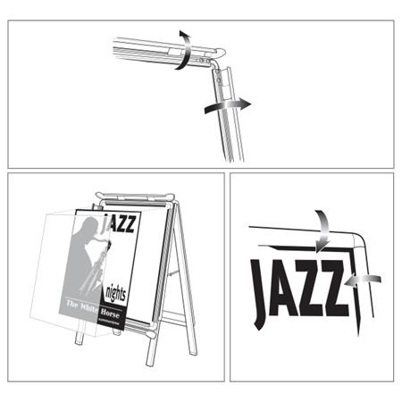 Stojan na plagáty typu A je vodotesný vďaka PVC fólii s inteligentným hliníkovým rámom, ktorý umožňuje jednoduchú výmenu plagátov.
